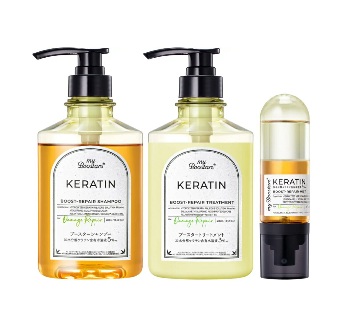ケラチンとブーストという2点に分けて説明をすると、ケラチンというのは毛髪の主成分であるタンパク質の名前で、そのケラチンを主成分とした補修成分によって毛髪内部からの補修に期待ができます。
